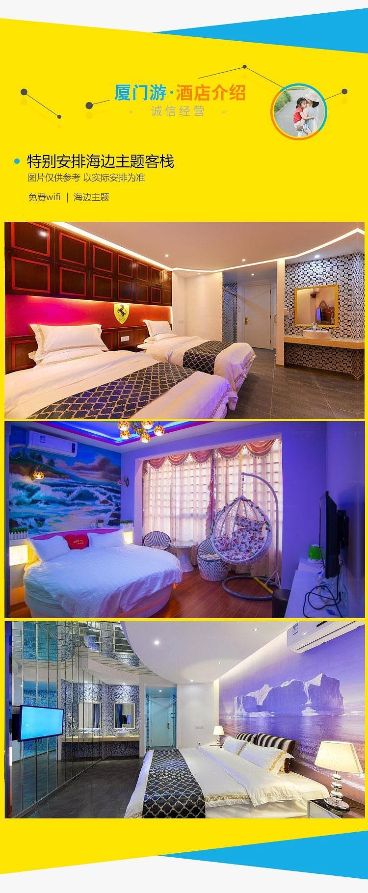 1、旅游团住宿:厦门连锁商务(准三)3 晚+体验鼓浪屿民宿 1 晚,2 人一间,酒店无三人间或加床,落单请补单房差