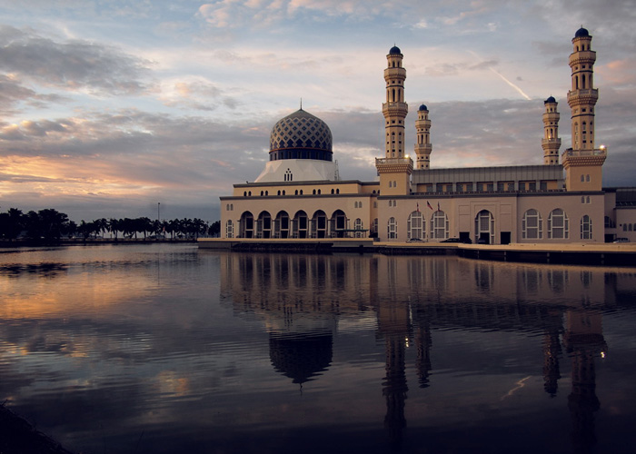 【马六甲海峡清真寺】寺位于人工修筑的马六甲岛上。落日余晖下的海峡清真寺很美丽,广播里传出的诵经声与海浪声相互交织,夕阳西下映衬着金色的穹顶,坐在海边的堤坝上欣赏这一美景是件很惬意的事。