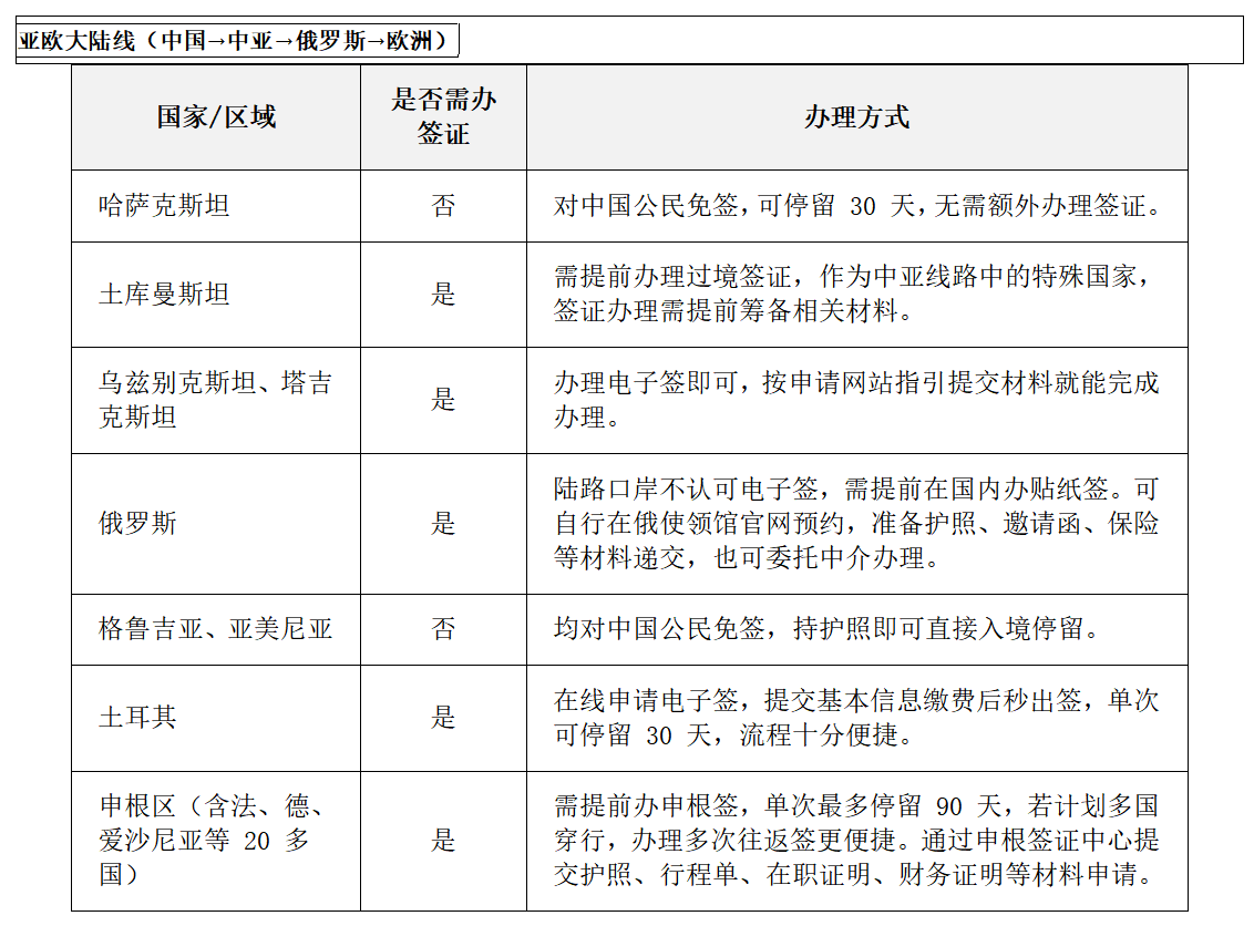 下面结合热门自驾线路,亚欧大陆自驾线路,给你整理详细的签证办理方法和对应国家要求。