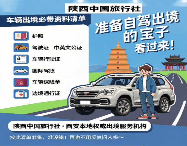准备自驾出境的宝子看过来!西安旅行社,陕西中国旅行社为您整理了车辆出境必带资料清单,按这个准备准没错,再也不用反复问人啦~